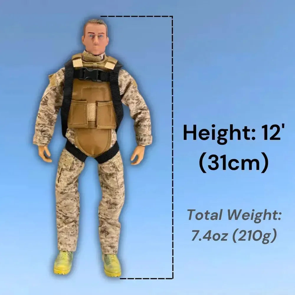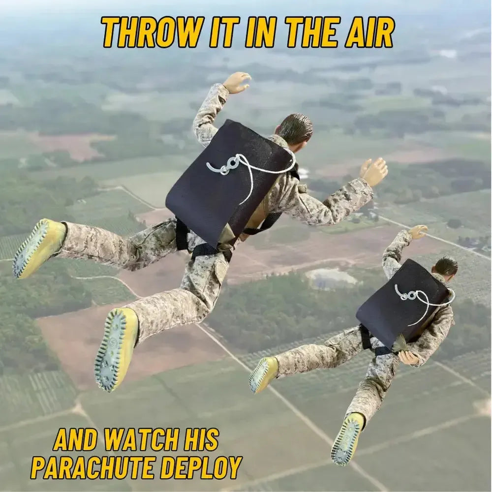 The parachute features a detailed harness that is easy to attach on the included action figure.