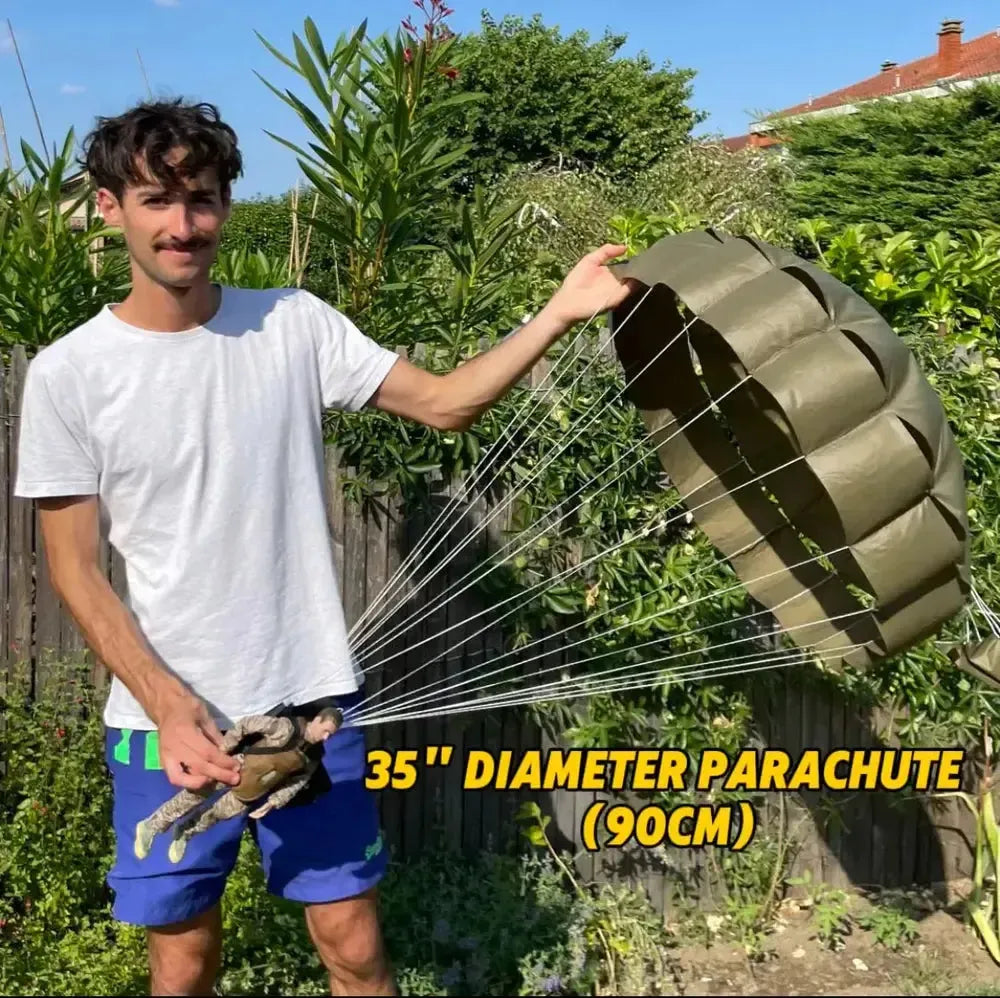 The parachute will come out of the backpack automatically after the launch, just like a real one!