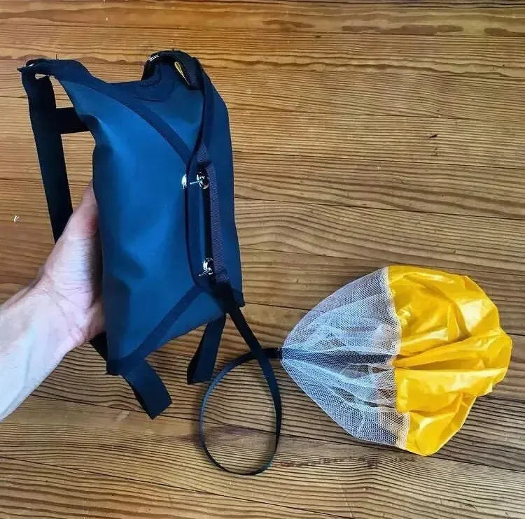 Place the parachute in its container, adjust the lines, and choose the ideal place to launch it (balcony, hill, drone...). No complicated set-up, just the desire to have fun!
