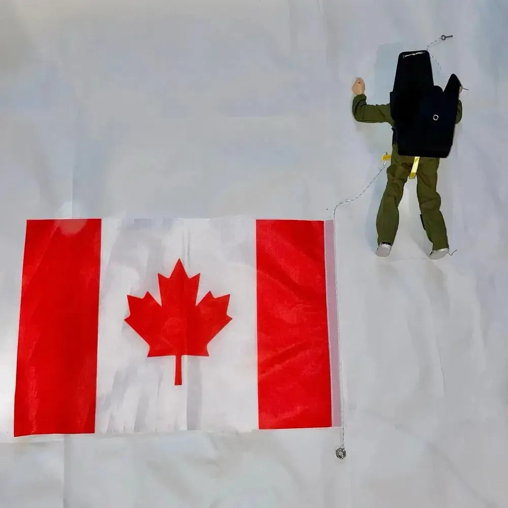 This is a Canadian drop flag for the RC Skydiver. Super lightweight Flag that you can display beneath your skydiver while descending. We have added weights to the flag so it flies correctly. Comes ready to attach to your skydiver.