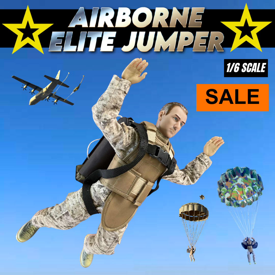 The parachute features a detailed harness that is easy to attach on the included action figure.